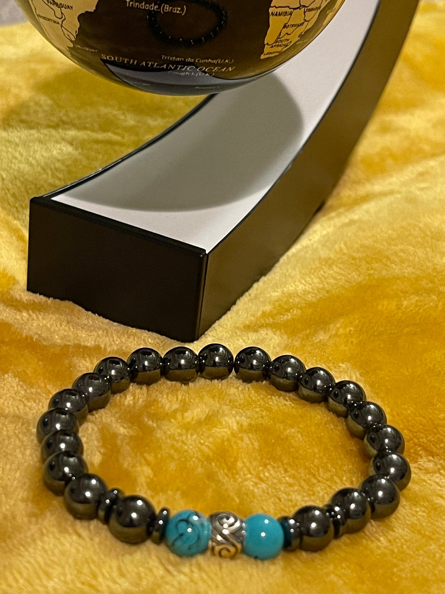 Ladies Hematite/Blue Turquoise/925 Sterling Silver. 8mm/7.5in.